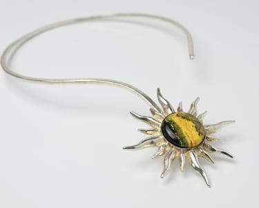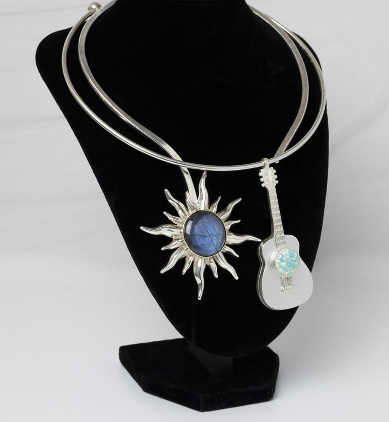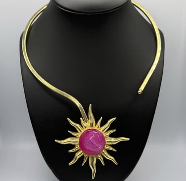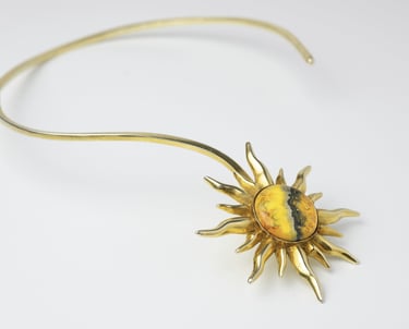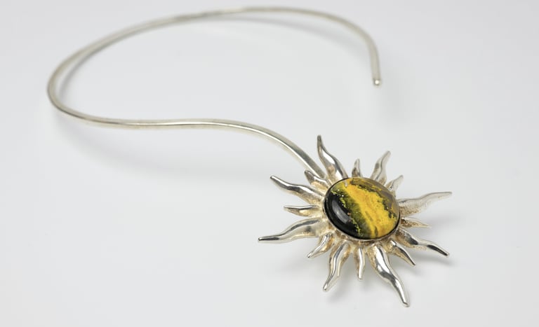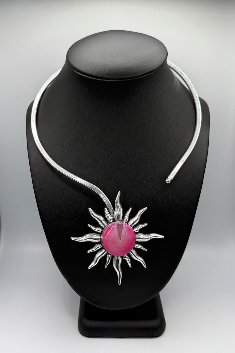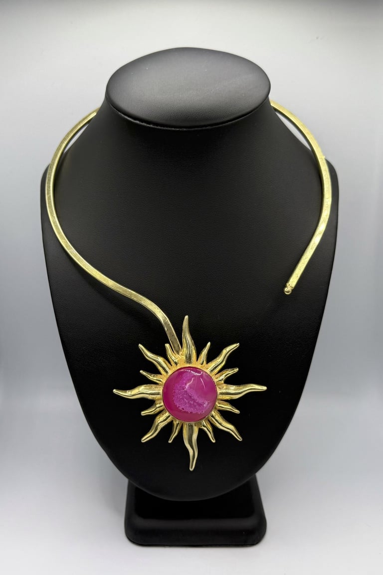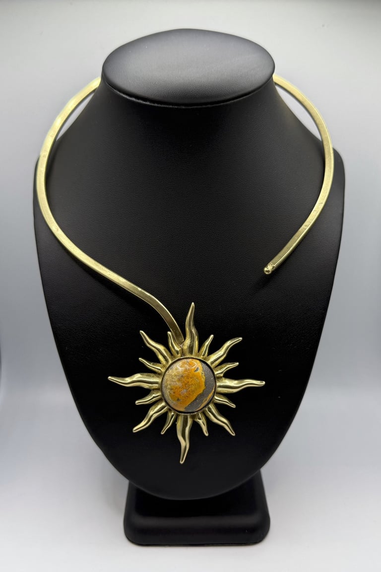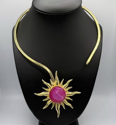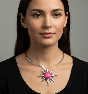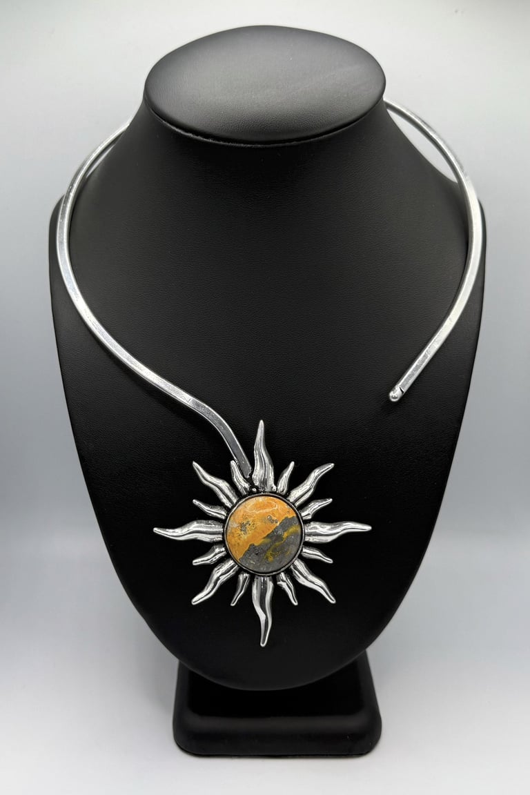 Discover your perfect cosmic match with our signature sunburst chokers in both luminous silver and rich gold. Featuring rare earth-inspired gemstones that bring ancient wisdom to modern style, these pieces celebrate the celestial dance between earth and sky. Each necklace is a wearable work of art that connects you to the universe's endless possibilities.
